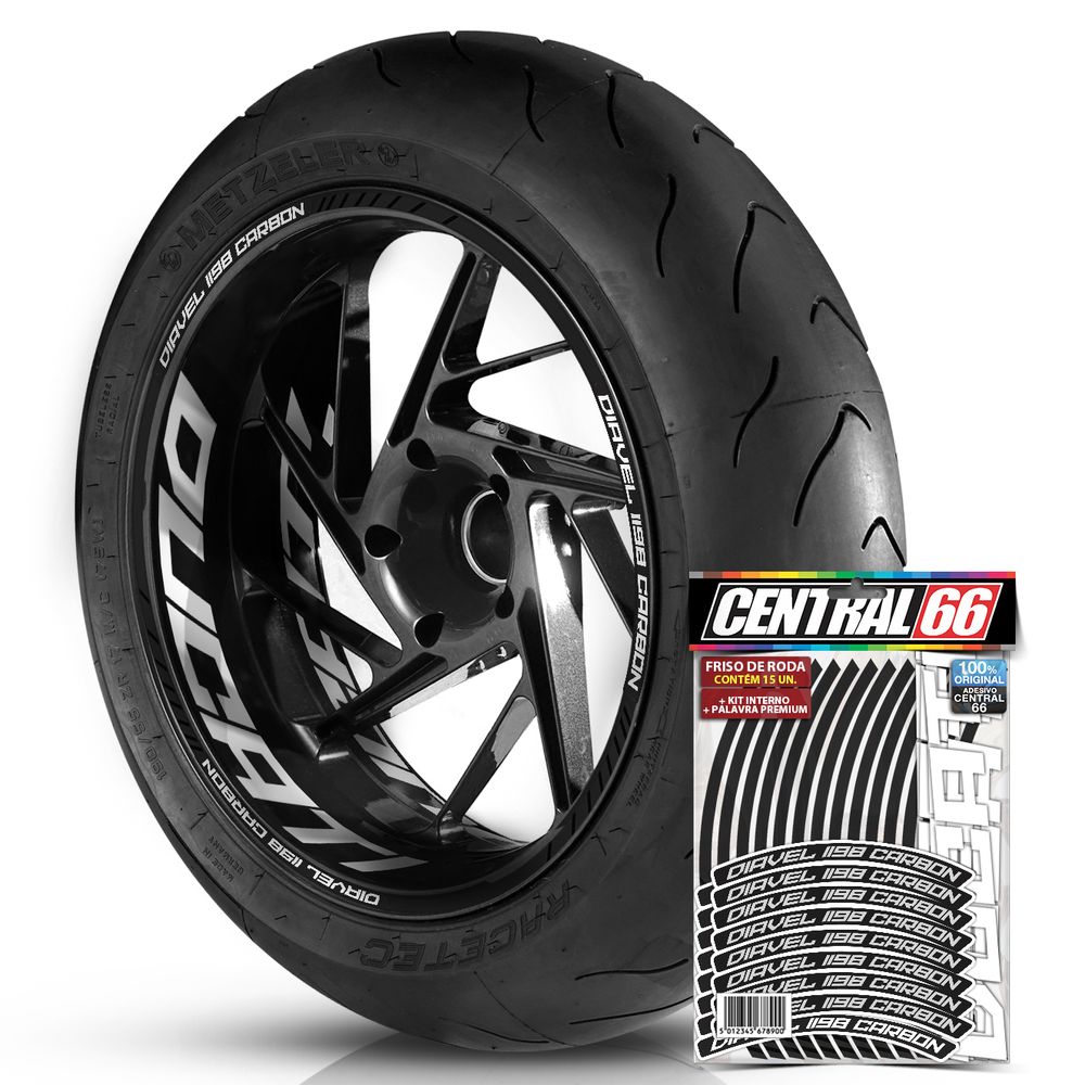 Adesivo Friso de Roda M1 + Palavra DIAVEL 1198 CARBON + Interno G Ducati - Filete Preto