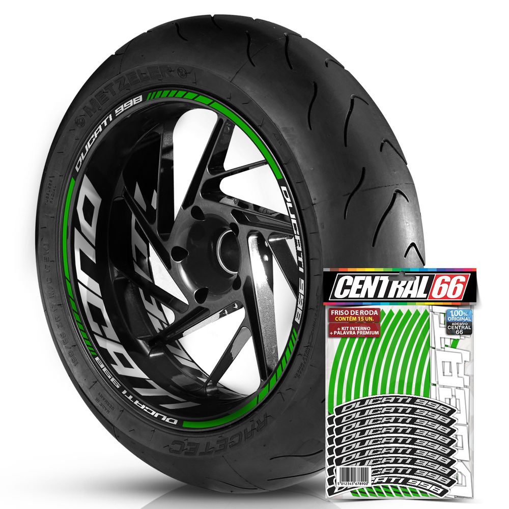 Adesivo Friso de Roda M1 + Palavra DUCATI 998 + Interno G Ducati - Filete Verde Refletivo