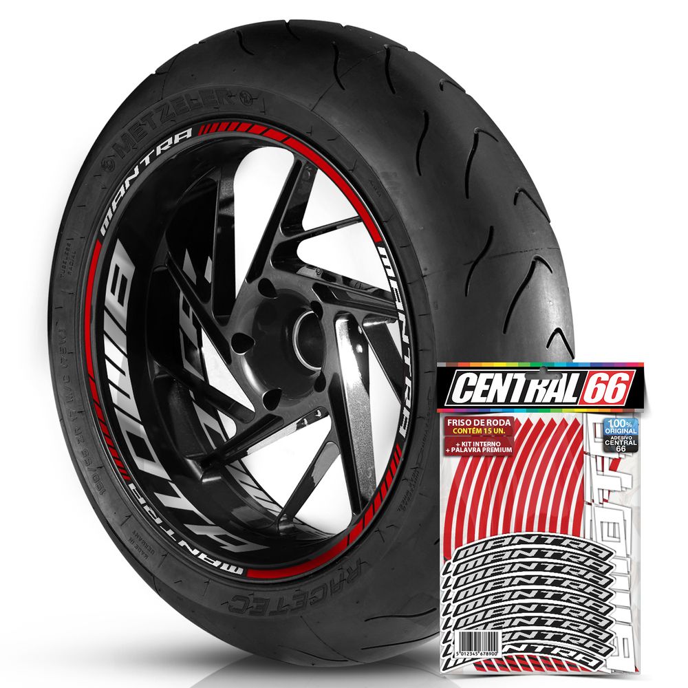 Adesivo Friso de Roda M1 + Palavra MANTRA + Interno G Bimota - Filete Vermelho Refletivo