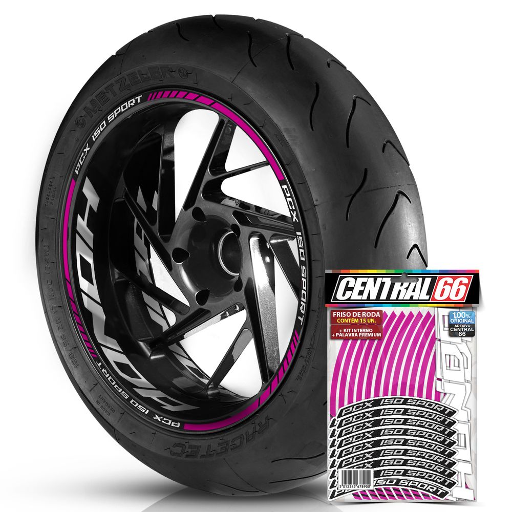Adesivo Friso de Roda M1 + Palavra PCX 150 SPORT + Interno G Honda - Filete Rosa