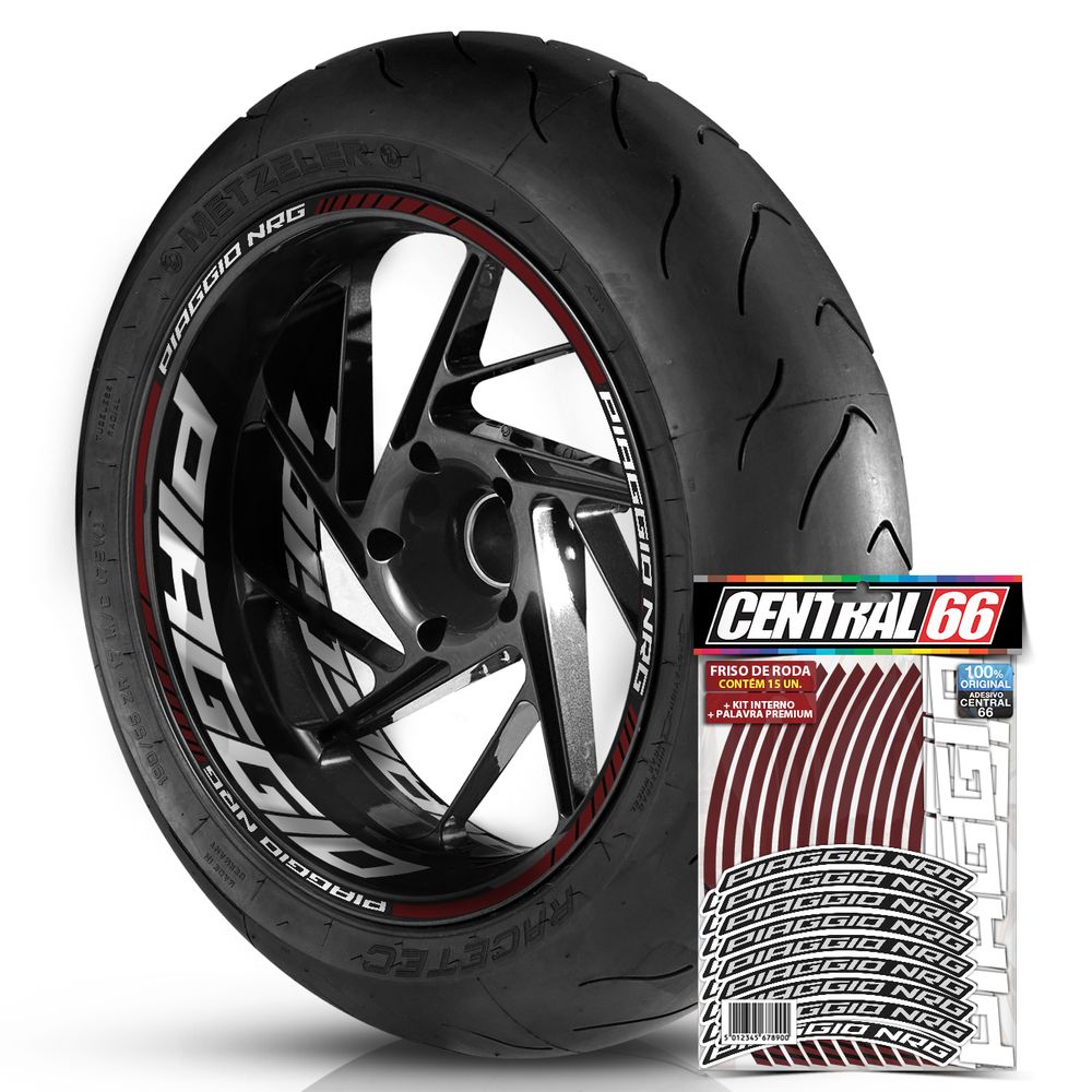 Adesivo Friso de Roda M1 + Palavra PIAGGIO NRG + Interno G Piaggio - Filete Vinho