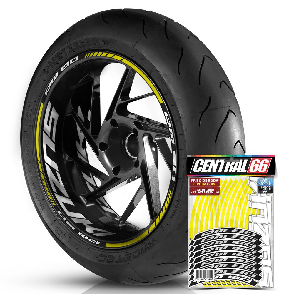 Adesivo Friso de Roda M1 + Palavra RM 80 + Interno G Suzuki - Filete Amarelo