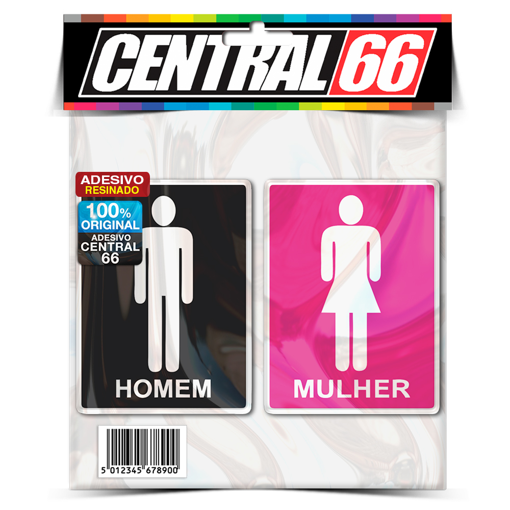Adesivo Resinado Placa - Banheiro Homem (Preto) + Mulher (Rosa)