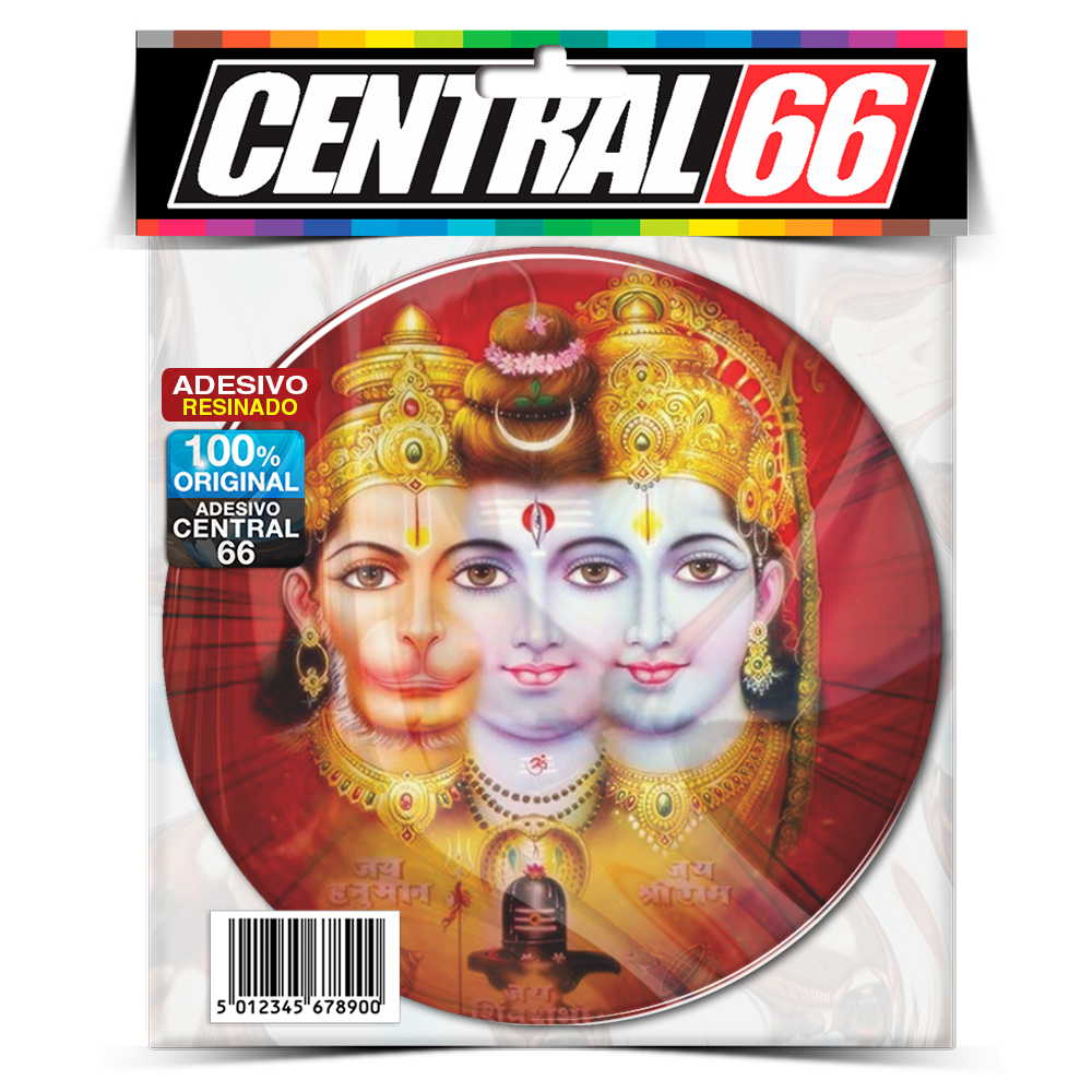 Adesivo Resinado Redondo Rama Shiva Hanuman Laranja - 3 cabeças