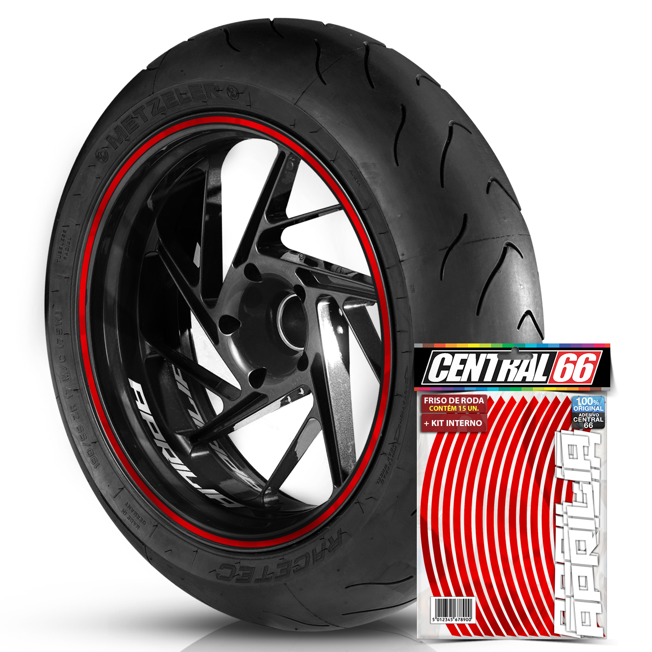 Kit Adesivo Interno de Roda P Aprilia + Friso Vermelho Refletivo