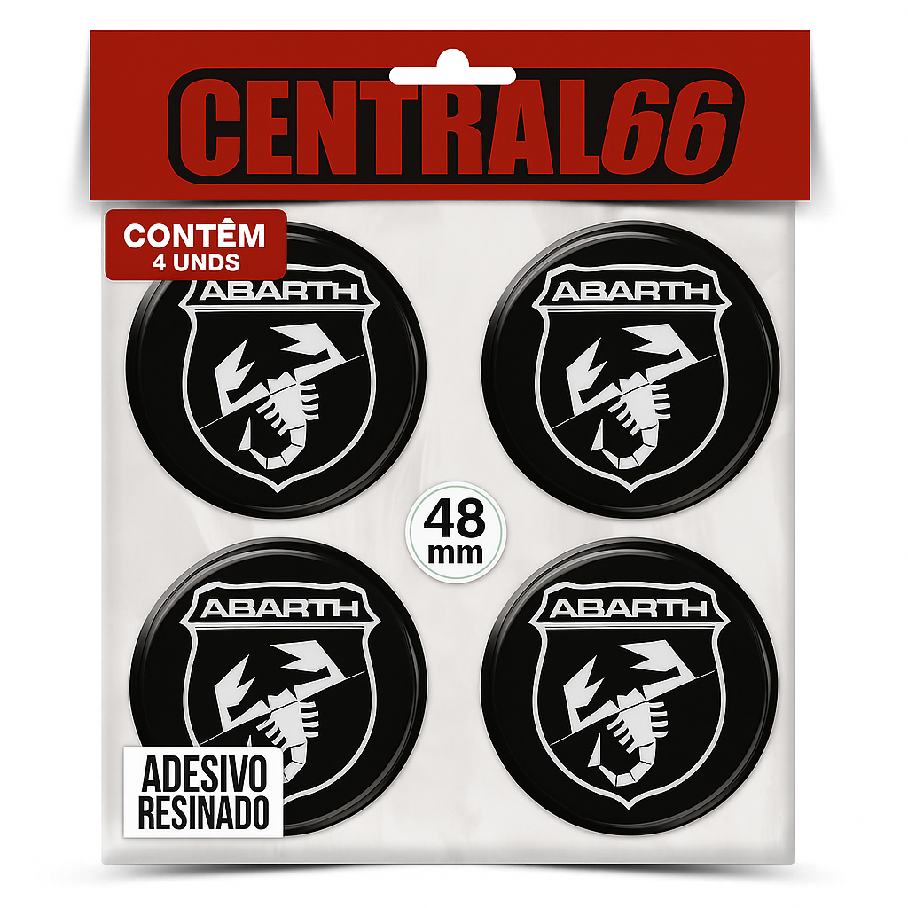 Kit Adesivos Roda Calota 48mm Abarth Preto e Branco Resinados